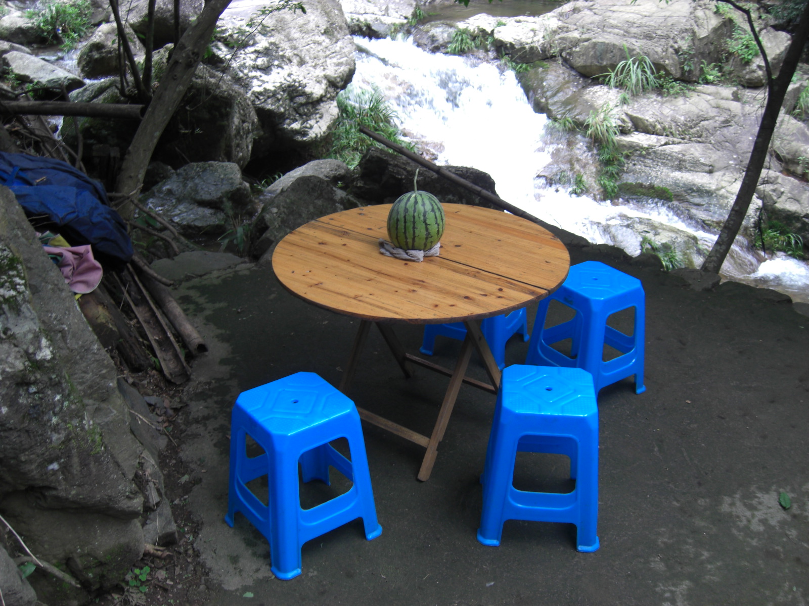 テーブルに放置されたのより、川の水で冷やしたスイカの方が魅力的だと思うけど…。